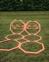 Allena il tuo gioco di gambe con gli Octa Speed Rings di Footbal Flick. In una colorazione arancione visibile, questi speed ring sono realizzati in materiale sintetico durevole per uso interno ed esterno. Agganciati insieme o usati piatti come anelli di velocità o ostacoli verticali, questi anelli di velocità possono essere impostati per riposare e sviluppare le tue abilità di lancio e riporli in un trasportino che riproduce il marchio Football Flick.