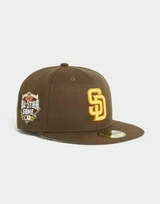 Sostieni la tua squadra con questo cappellino MLB San Diego Padres 59FIFTY di New Era. Disponibile in una colorazione marrone, questo cappellino ha una corona piena e strutturata ed è realizzato in tessuto di poliestere liscio e leggero per un comfort assoluto. Presenta una visiera piatta per la copertura e occhielli per la ventilazione. Questo cappellino è rifinito con lo stemma dei Padres sul davanti e con una toppa laterale.