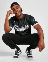 Aumenta il tuo sostegno in uno stile street-ready con questa maglia Chicago White Sox City da uomo di Nike. In una colorazione nera con strisce bianche, questa maglia è realizzata in poliestere ultra morbido per il comfort quotidiano. In una vestibilità standard per un abbigliamento rilassato, questa maglietta presenta maniche corte e chiusura a due bottoni per quell’atmosfera ispirata al baseball. Rifinito con il marchio “Southside” dei Chicago White Sox sul davanti e uno Swoosh Nike sul petto. Lavabile in lavatrice.