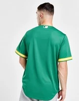 Sostieni la tua squadra con questa maglia da uomo MLB Oakland Athletics Road di Nike. In una colorazione verde, questa maglia dalla vestibilità comoda è realizzata in tessuto poliestere liscio e leggero per un comfort duraturo. Presenta un’abbottonatura a tutta lunghezza per personalizzare il tuo look e ampie maniche corte. Ha un orlo curvo per un look e una copertura classici ed è rifinita con polsini dorati a contrasto e uno Swoosh sul petto. Firmato con un audace marchio di Oakland sul petto e un’etichetta dell’atleta sopra l’orlo. Lavabile in lavatrice. | Il nostro modello è alto 6’0″ con un petto di 38,5″ e indossa una taglia M.