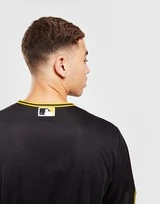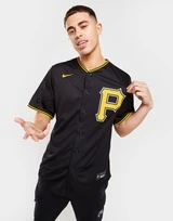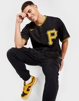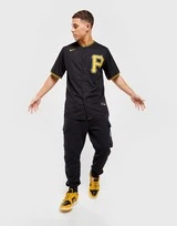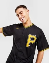 Torna a casa e in trasferta con questa maglia alternativa da uomo MLB Pittsburgh Pirates di Nike. In una colorazione nera con finiture dorate, questa camicia dalla vestibilità comoda è realizzata in tessuto poliestere leggero e traspirante per un comfort fresco. Presenta un classico scollo a V e abbottonatura frontale per una copertura personalizzata, oltre a dettagli a coste e maniche corte per movimenti illimitati. Rifinito con Swoosh e marchio MLB sul davanti e sul retro, con l’iconico badge “P” sul petto. Lavabile in lavatrice. | Il nostro modello è alto 5’11” con un petto di 38″ e indossa una taglia M.
