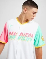 Rappresenta i tuoi colori in campo e sugli spalti con questa maglia MLB San Diego Padres City Connect da uomo di Nike. In una colorazione bianca con pannelli rosa e verdi sulle maniche, questa maglia da stadio è realizzata in poliestere leggero e traspirante, mentre l’abbottonatura frontale aggiunge flusso d’aria. Ha un taglio classico, maniche ampie e orlo sagomato per una vestibilità senza restrizioni. Rifinito con i loghi MLB e Swoosh, il logo Padres e il caratteristico marchio San Diego. Lavabile in lavatrice. | Il nostro modello è alto 5’11,5″ con un petto di 38″ e indossa una taglia M.